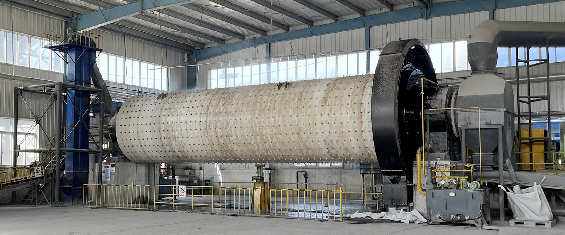 ■久和材料科技有限公司采用常見的φ3.2×13m球磨機(jī)(電機(jī)功率1600kw),采用開路粉磨工藝生產(chǎn)超細(xì)復(fù)合粉臺時產(chǎn)量可達(dá)40~50t,年產(chǎn)能20~30萬噸;噸產(chǎn)品綜合電耗在40度以下。